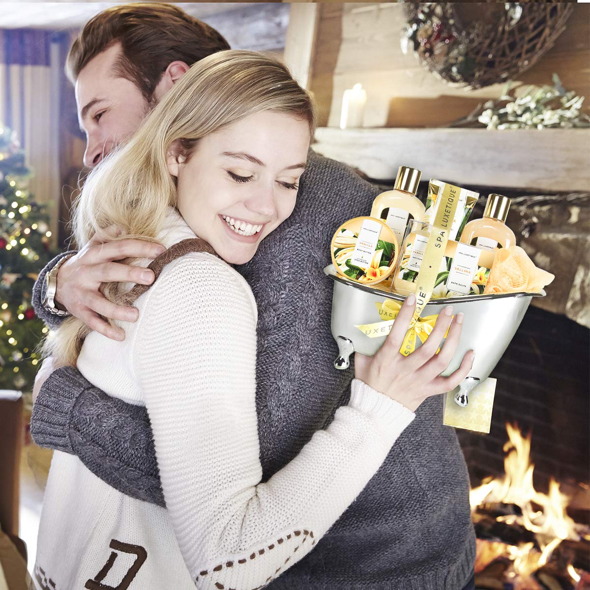 Gifts for Women, Spa Luxetique Spa Gift Baskets for Women, 8 Pcs Vanilla Bath Gift Sets, Vanilla Gift Baskets, Valentine's Day Gifts